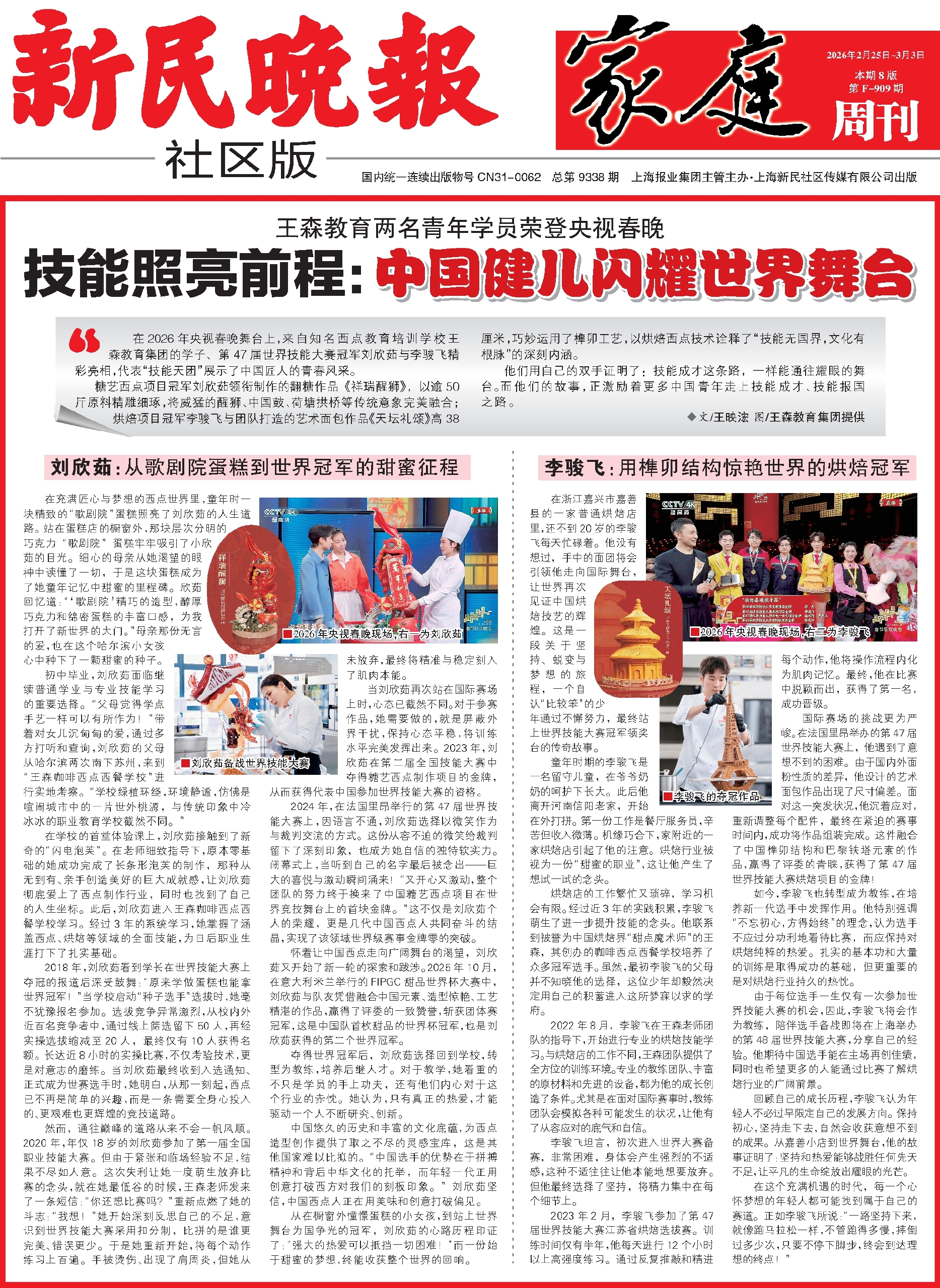 技能铸魂,青春闪耀:王森教育学子登春晚、耀世界的匠心之路来源:王森咖啡西点西餐学校 发布时间:26-02-26