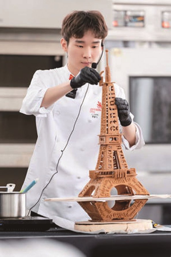 国际赛场的挑战更为严峻。法国里昂世赛上,国内外面粉性质的差异导致他的艺术面包作品出现尺寸偏差。危急时刻,李骏飞沉着应对,重新调整配件,最终在规定时间内完成组装。这件融合中国榫卯结构与巴黎铁塔元素的作品,凭借独特的文化创意与精湛工艺,赢得评委一致青睐,斩获烘焙项目金牌。